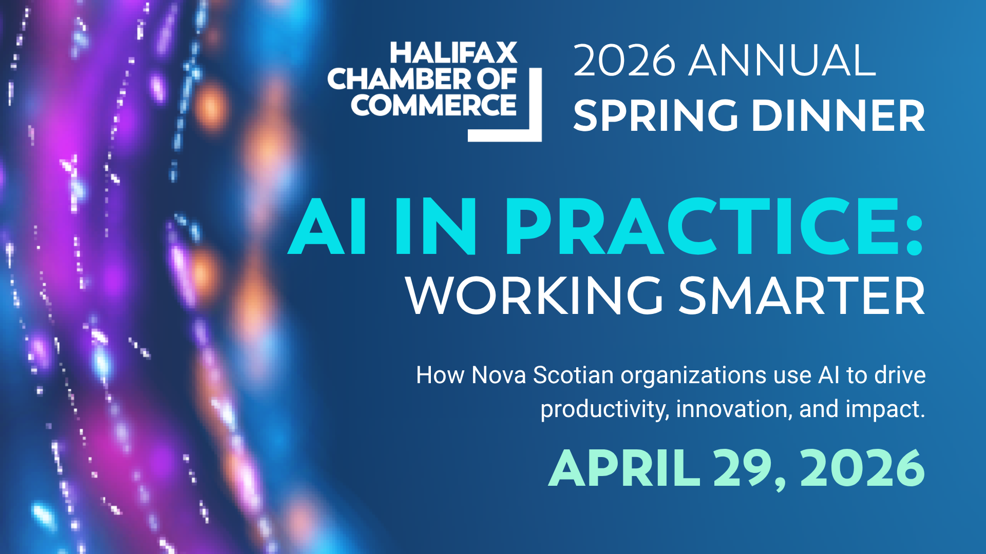 The fourth industrial revolution is here, and it’s changing how we do business, how we interact with each other, and how we learn. To make sure Halifax is ready and able to take full advantage of this exciting opportunity, join us at the 2026 Spring Dinner for a discussion on real-world applications of AI. Speakers will highlight how Nova Scotia-based organizations are already using AI to drive productivity, innovation, and impact through practical and human-centred approaches.